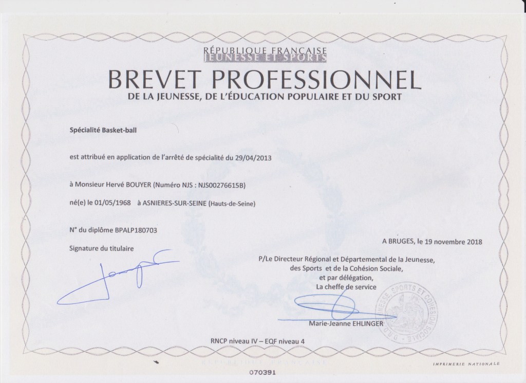 Brevet d’Etat d’Educateur Sportif (BPJEPS)